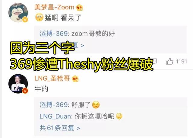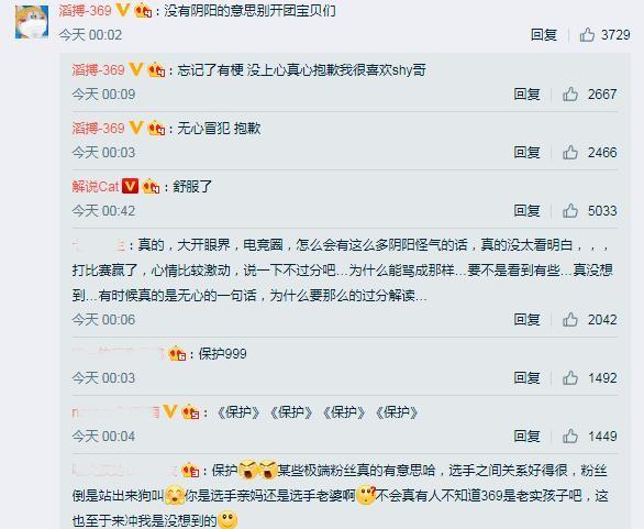 众所周知,"舒服了"这个词在王校长的带领下已经成为电竞热梗,369的这句回复在输掉比赛的iG粉丝看来无疑是在嘲讽,因此,不少iG粉丝在369微博下方表达不满。