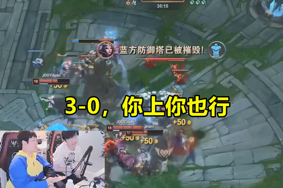 在FPX与JDG打比赛之时,通过对FPX以及JDG的几波比赛决策,以及打野路线等等进行分析,让jiejie换位思考,从自身出发去寻找这两支队伍的问题,以及可以学习的点。而话又说回来,阿布不愧是老教练了,说话就跟老师一样,在FPX败给JDG之后,还对jiejie说道:3-0结束比赛,你上你也行。杰杰:我上我不行,我要是上场,第一局打完我就被下了。(看来还在想自己被下一事)