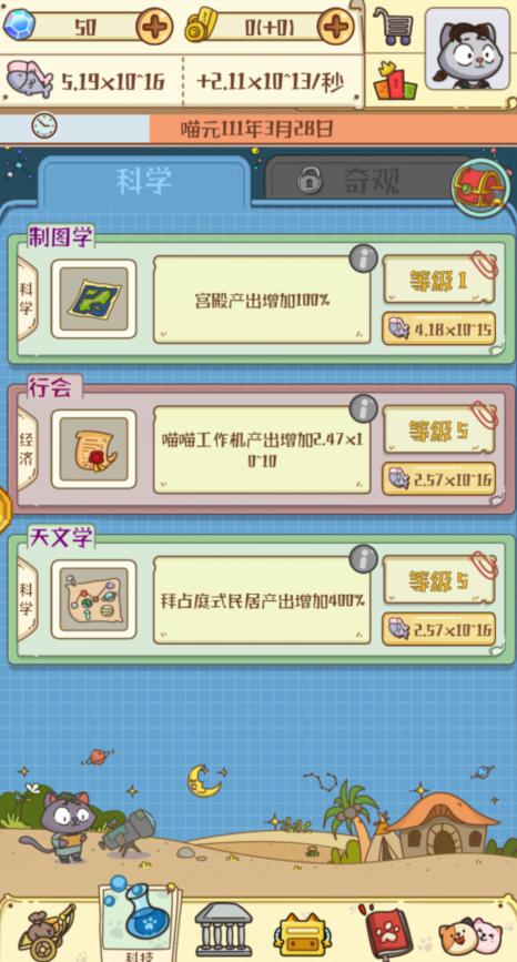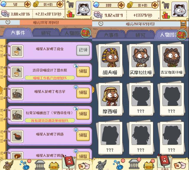 不要被看似宏伟的世界观吓到~秉持着保护毛发的观念,发展官们在这款游戏中可以拒绝一切令人头秃的操作,只需轻松加愉悦地挂机放置,通过简单的点击升级建筑来获得小鱼干,就能逐渐开启全新的文明进程 o(* ̄▽ ̄*)ブ