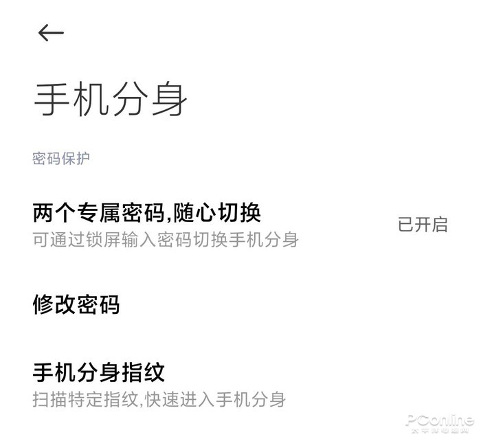 MIUI:手机分身,可通过不同密码或指纹进入不同的空间,伪装性强,功能最全面