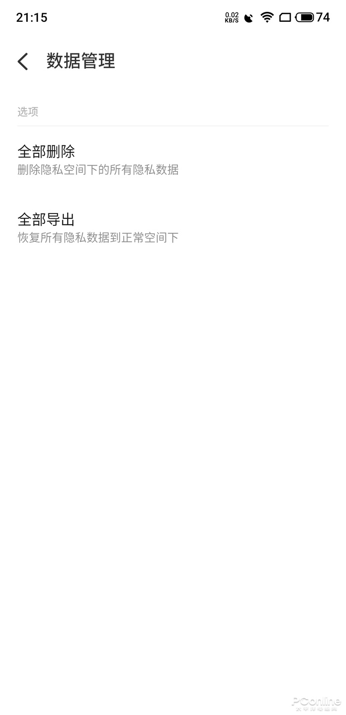 在对待数据方面,Flyme又一次自成一派:只允许隐私空间向主空间导出数据,不允许主空间向隐私空间导出数据,要么你就把隐私空间的数据全删了。