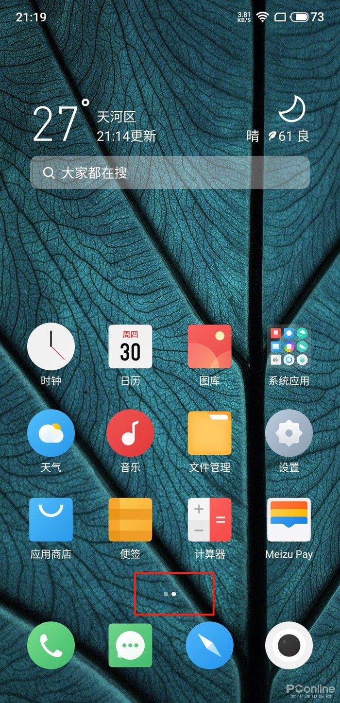 有个有趣的点是,Flyme的隐私模式可以设置隐私应用。比如,你可以把桌面第三屏的全部应用设为隐私应用,那么在回到主空间之后,桌面第三屏就神秘消失了;而进入隐私空间之后,桌面第三屏的应用就显示出来了,而且在通知栏下方会显示一个隐私的图标。这个功能,很适合用来隐藏某些不得了的应用。