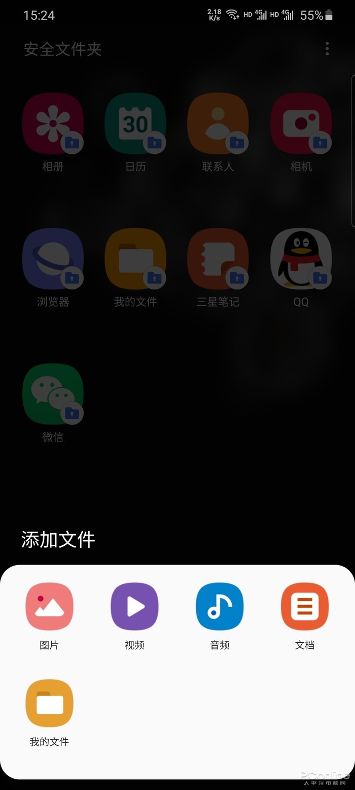 进入‘安全文件夹’之后,理论上可以添加手机里的任何东西,比如应用、图片、视频、音频、文档等等。