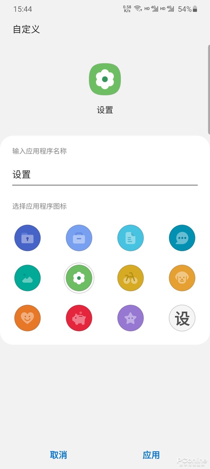 不过,三星还是给‘安全文件夹’做了一点点伪装工作,就是可以自定义图标和名称,比如这里我就把它伪装成了‘设置’,只要把正版的‘设置’隐藏了,这样也能达到以假乱真的效果。