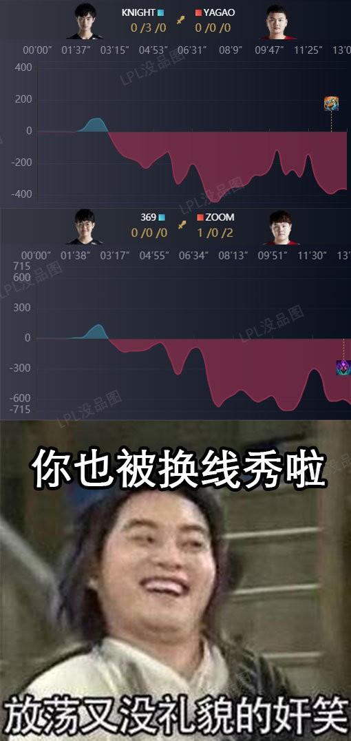 开局TES选择了中上换线,但是knight和对位的zoom公爵比起来太年轻了,上路的打线经验实在太少。换到上路后被打野连续抓到几次,加上自己的失误被单杀,TES反而处于劣势。中路369虽然压制了卡萨丁,但卡萨丁只要不死保持等级正常就算对位成功了。