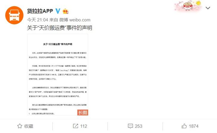 原标题:货拉拉回应“搬家两公里要价5400元”:司机已被平台封号并清退