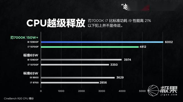 刃7000K 2020在散热上,采用了新一代120风扇以及150W的5热管散热器,整体散热效果比120mm水冷还要好,满足广大玩家的产品需求。而全新的刃9000K 2020上则是采用了170W的240水冷散热器,提供更强大的散热降温能力,助力硬件性能的全面发挥,为发烧级用户带来极致体验。