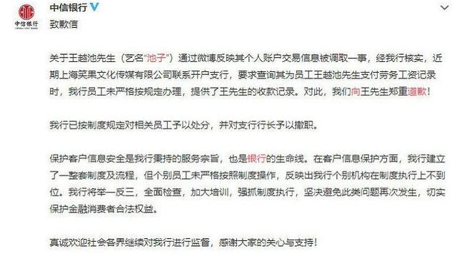 因此,面对这个可不承受的瓜,中信银行业也不得不深夜来跪:我错了,行长撤职,员工挨处分。