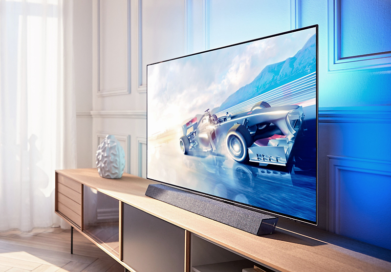 飞利浦OLED934/T3是新一代的OLED显示技术与飞利浦P5画质增强引擎、流光溢彩技术的组合。P5画质增强引擎画质优化芯片提升画质体验,展现细腻光影和暗部细节,流光溢彩技术根据画面内色彩变化自动变化背景色彩,营造沉浸体验。动感画质优化技术使得细节更加精准。