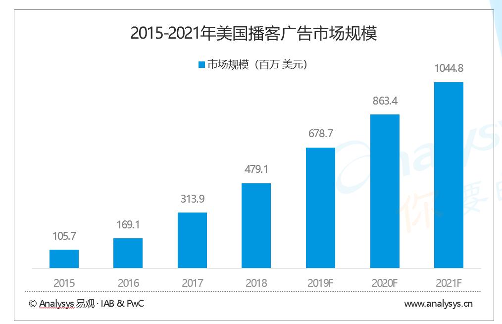 此外,从2015年开始,海外播客市场迎来第二次发展高潮,大量覆盖科技创业、文化艺术、新闻评论、教育研究等领域的播客出现并获得用户认可,而播客营销也在大数据、AI等技术应用中开始向自动化、智能化、精准化方向突破。有分析预测,2021年美国播客广告市场将突破10亿美元。