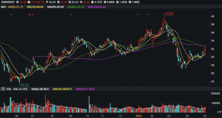 截至2020年5月8日收盘,海康威视报收于31.84元/股,较今年2月创下的近一年高点已下挫20%。