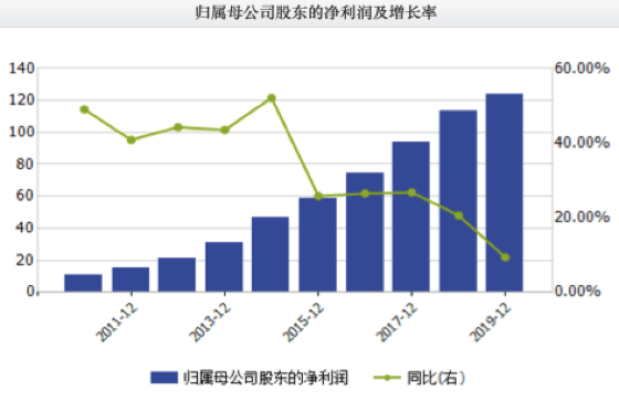 事实上,《投资时报》研究员注意到,近年来,海康威视业绩增速有所下滑。据Wind数据显示,2017年—2019年,海康威视营收分别为419.05亿元、498.37亿元和576.58亿元,同比增长31.22%、18.93%和15.69%;归母净利润分别实现94.11亿元、113.53亿元和124.15亿元,同比增长26.77%、20.64%和9.36%。
