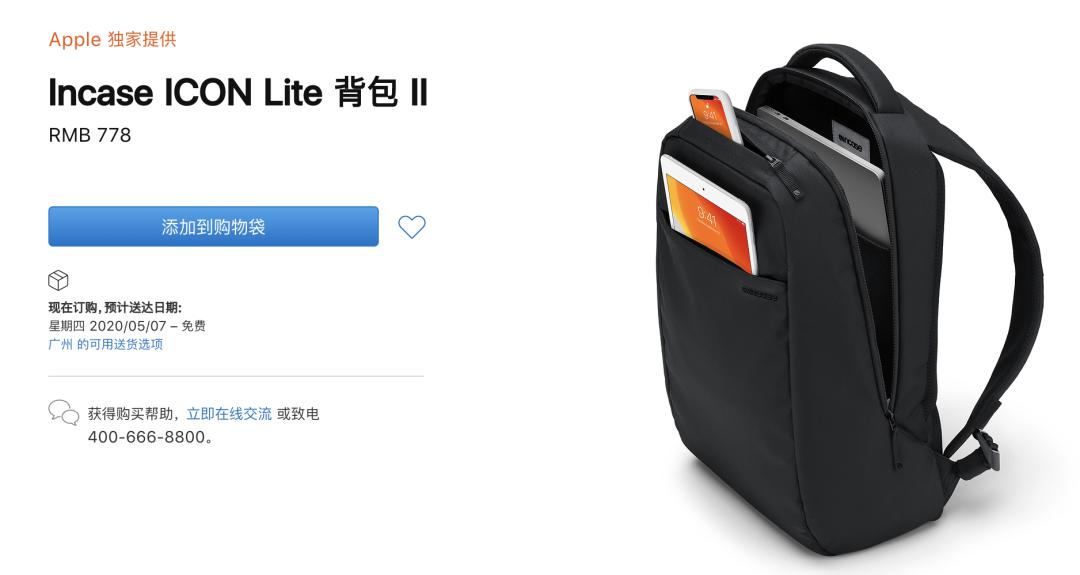 在今年二月份的时候,苹果官网的精选配件页面中上新了一款名为 Incase ICON Lite 的「苹果特供」背包。为了突出这款背包的大容量,官方配图的背包里还放了一台 MacBook、一台 iPad 以及一台 iPhone。