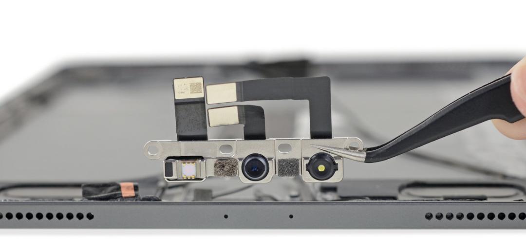 从iFixit 的拆解可以看出,iPad Pro 上的 Face ID 模组当中的元器件虽然在排列上是有所改变的,但所占的面积跟 iPhone 上的相差无几。