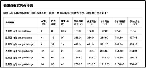 案例:阿里云服务器的实例价格表(产品目录)如下图所示。
