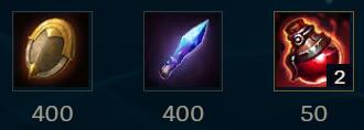 出门装:可以根据敌方下路组合进行判断,灵活选择圣物之盾或者窃法之刃,一般面对短手组合可以选择窃法之刃通过频繁消耗来提高发育速度,但是如果面对一些敌方对线能力较强的组合,优先考虑圣物之盾保证对线的发育。