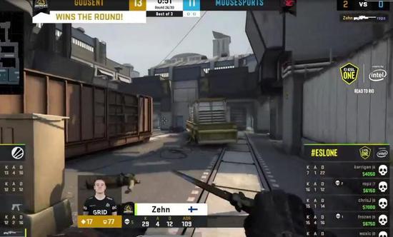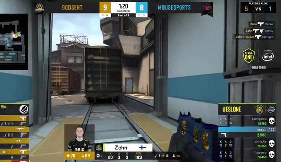 19局frozen和ropz的B区突破时两个秒杀惊险赢下。勉强凑出枪械的GODSENT顶防下水道和A区,却是一人未杀全被秒掉,ECO后比分已经来到9-12。