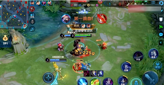 游戏开局骚白先到野区拿到了红buff,之后来到边路,配合边路的虞姬和廉颇直接包抄敌方小鲁班,鲁班本身就是个脆皮,所以直接就被秒了,骚白在开局就拿到了一血,建立了前期的经济优势。