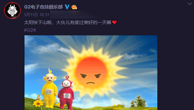下面是G2战队的第一条动态,一句“你是真的红,也是真的红”拉开战局,前面一句指的是RNG在LPL的人气,尽管RNG在世界赛的成绩并不是很好,但他们仍旧得到许多人的支持,即使IG和FPX拿过世界冠军,但他们的人气跟RNG比起来还是要差上一些。