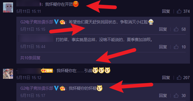 但第二句就有意思了,RNG确实“红”,不过这个红是指粉丝的“怒气表情”,G2收集了RNG最近道歉动态下的评论,这些全都是RNG粉丝的怒火,G2这波开团算是“舒服了”,直接伤口上撒盐。然而G2还是羡慕起来,因为这些粉丝都是真爱,即使战队成绩不好,但他们依旧不离不弃,其他战队羡慕不来!