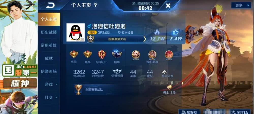 最近耀神在直播时冲刺着国服黄忠,奈何队友非要双边组合,耀神被迫选择了橘子打野,本身在前期节奏无敌情况下,被对手硬生生给打了回来,而且毫无还手之力,赛后一看对手竟是两职业选手加两个国服!队友仅仅一个国服元歌而已!耀神赛后习惯性的点开主页,发现了被吊打的原因!