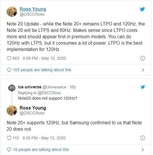 原标题:爆料称三星或将仅在顶配Note 20+上才会搭载LTPO的120Hz 屏幕