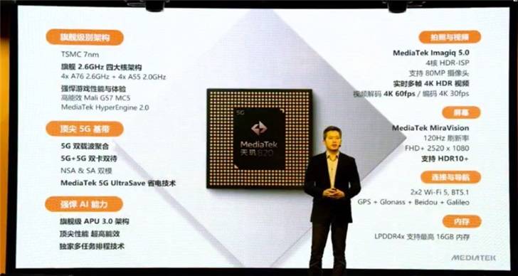 官方表示,联发科天玑820搭载了全球最先进M70 5G基带,支持NSA/SA、5G+5G双卡双待、支持5G双载波聚合、搭载独家UltraSave 5G省电技术,最高支持120Hz屏幕刷新率和HDR10+。