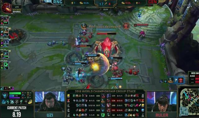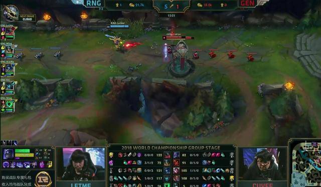 结果就是RNG在大龙坑一蹲,GEN想上来做视野,RNG就抓住了机会,把慎先击杀了!随后直上高地,而这个时候让男的剑魔直接追着尺帝砍,哈哈哈,这个我们LPL粉丝要多去看看啊!