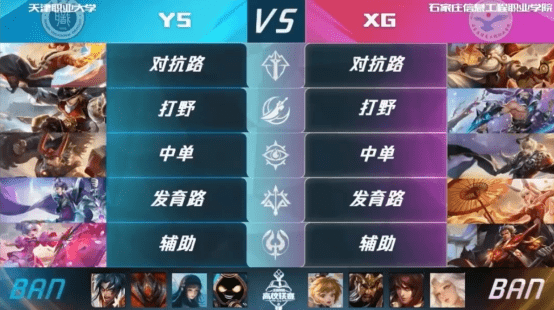 在最后一场天津职业大学YS对阵兰州大学GOC的比赛中,面对着夺冠热门GOC,YS首局选出孙膑体系,采取避战的方式减少前期的经济损失,并不断的寻找机会。中期,GOC操作失误,在上路一塔开“死亡列车”,被YS拿下三杀。随后YS不断抱团牵扯,稳稳拿下首胜。第二局GOC以抢代BAN,选出孙膑体系,虽然YS阵容缺少控制,但前期的伤害十分足。同时,杨玉环还补足了后期的反打能力。在进行了30分钟的鏖战之后,YS顺利晋级。