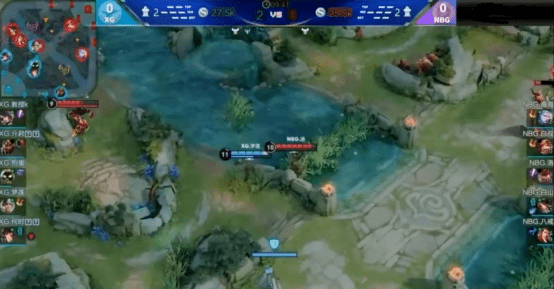 这一局真正展现了XG在BP上的理解深度。在NBG拿到公孙离后,XG已经意识到了他们要组成“电梯”组合,于是选择了在线上并不输公孙离的张飞、马可波罗组合,并补上了西施可以强制位移的英雄。而NBG这边除了大乔外,还补了猪八戒保公孙离发育。由于西施需要发育且惧怕法刺,XG第二轮连BAN了貂蝉以及嬴政,而NBG这边则BAN了上局表现亮眼的娜可露露,以及另一位可以强制位移的项羽。后续为了补足控制,XG选择了白起,而面对着NBG的干将,又补了高爆发的兰陵王来进行针对。从这一局的BP上看,能够连环控制的XG占据了巨大的优势。
