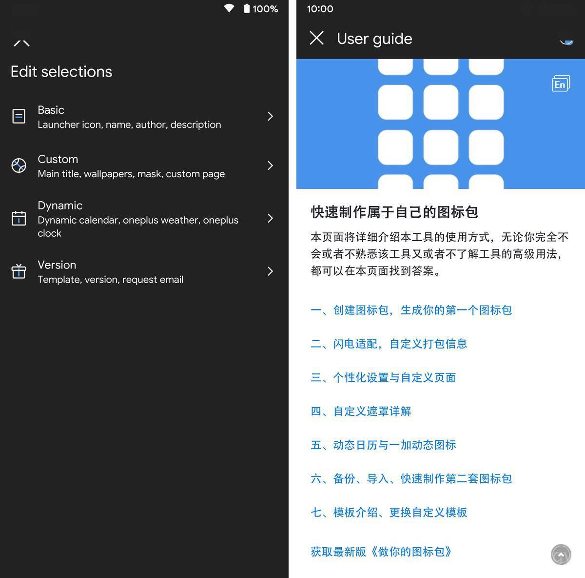 当然,以上仅展示了粗略的制作步骤,做你的图标包还能够为图标包添加遮罩、壁纸等,甚至支持用户适配动态日历图标与一加的动态天气图包,具体的使用教程在应用中已经给出,如果你想要亲自动手制作一个独一无二的图标包,不妨参照教程开始吧。