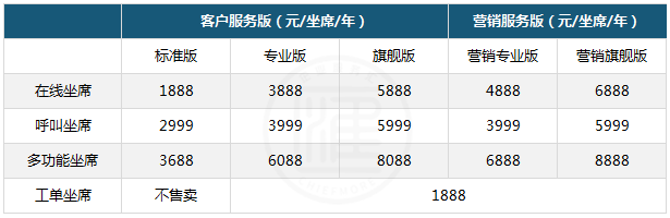 同一类产品又根据功能的多寡分为了标准版、专业版和旗舰版三种套餐,不同套餐版本分别面向不同坐席规模的企业,套餐的功能差异也主要体现在坐席管理功能上。