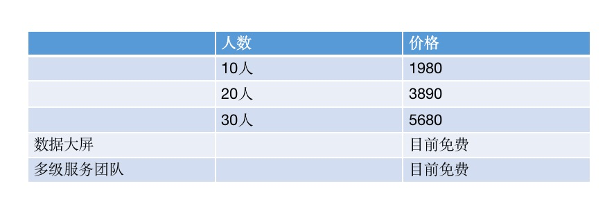 与七鱼的定价策略不同,售后宝是按照企业版本人数分别定价的,使用人数越高价格越高,也可以买不限人数的版本。售后宝的目前增加了数据大屏和企业支付的功能,大屏监控功能方便用户规模较大的企业更好地进行现场管理;企业支付则服务现场服务时收费,方便财务结算费用。此外,售后宝还增加高级API接口,方便企业将已有其其他业务系统与售后宝统进行对接,实现各个系统中数据的打通。但是目前是基于钉钉使用。