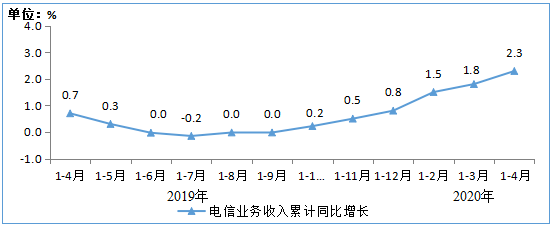 工信部微信公众号5月20日发布2020年1-4月通信业经济运行情况。