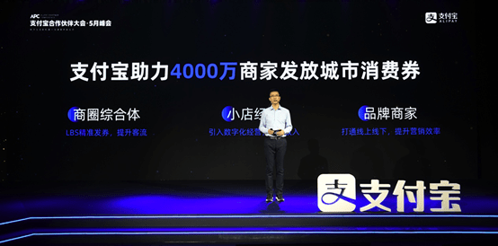 在5月20日支付宝合作伙伴大会上,蚂蚁集团CEO胡晓明宣布全面开放消费券产品,除了政府之外,商家也能通过支付宝发放数字消费券,“第一个先给小店安排上。希望能借助消费券等数字化手段,在3年内让4000万商家转型成为数字小店。”