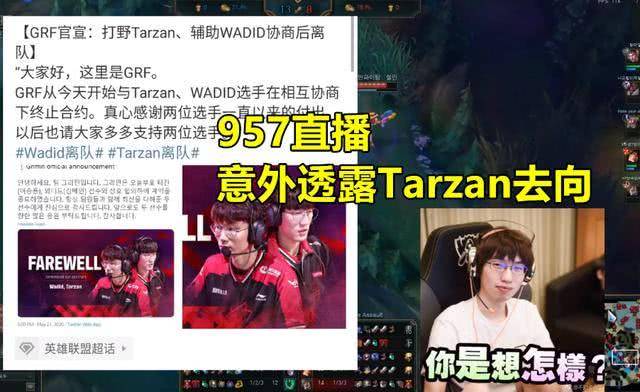 之前有流言称Tarzan将加盟VG追随Kkoma的脚步。不过近日,前WE上单选手957在直播中说:"我从没说过Tarzan会去LNG"。实在是有点此地无银三百两的味道。再联想到Li-Ning和GRF曾有过赞助的关系,近水楼台先得月,肥水不流外人田,把Tarzan送到LNG,听起来也合情合理。