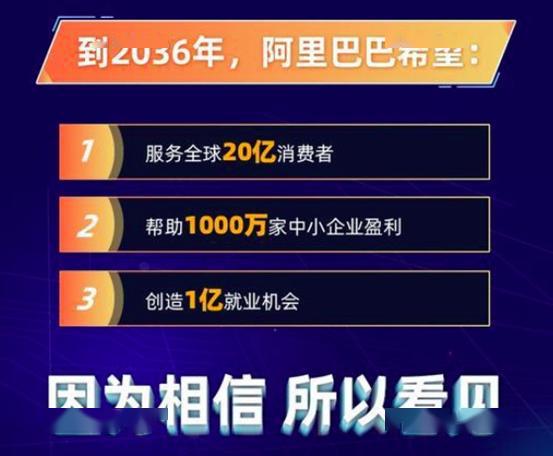 阿里还为自己定下了2036年实现服务20亿消费者、帮助1000万中小企业实现盈利、创造1亿就业机会的目标。