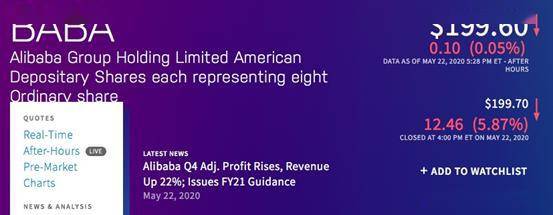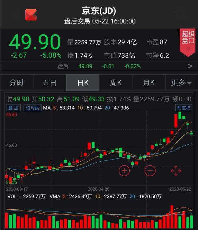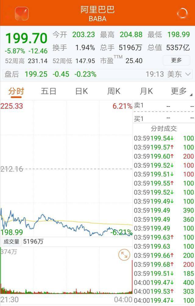 但两家公司在今年一季度的净利润表现均不太理想,财报发布后,两家巨头的股价表现也出现分化,据纳斯达克官网, 阿里巴巴昨夜收跌5.87%,目前市值5357亿美金。一天市值蒸发335亿美元,折合人民币2400亿。