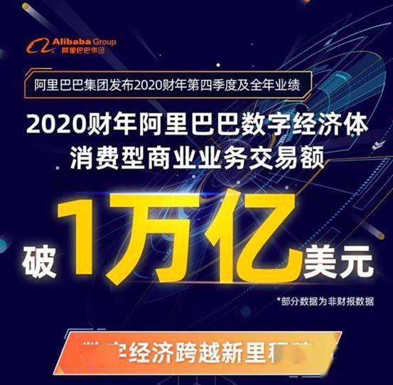 2020财年, 阿里巴巴消费型商业业务交易额(GMV)突破7.053万亿元人民币。这意味着, 阿里巴巴成为了世界第一个平台销售突破1万亿美元的公司,无论是对于 阿里巴巴和还是对于中国电商界,这都是里程碑式的事件。