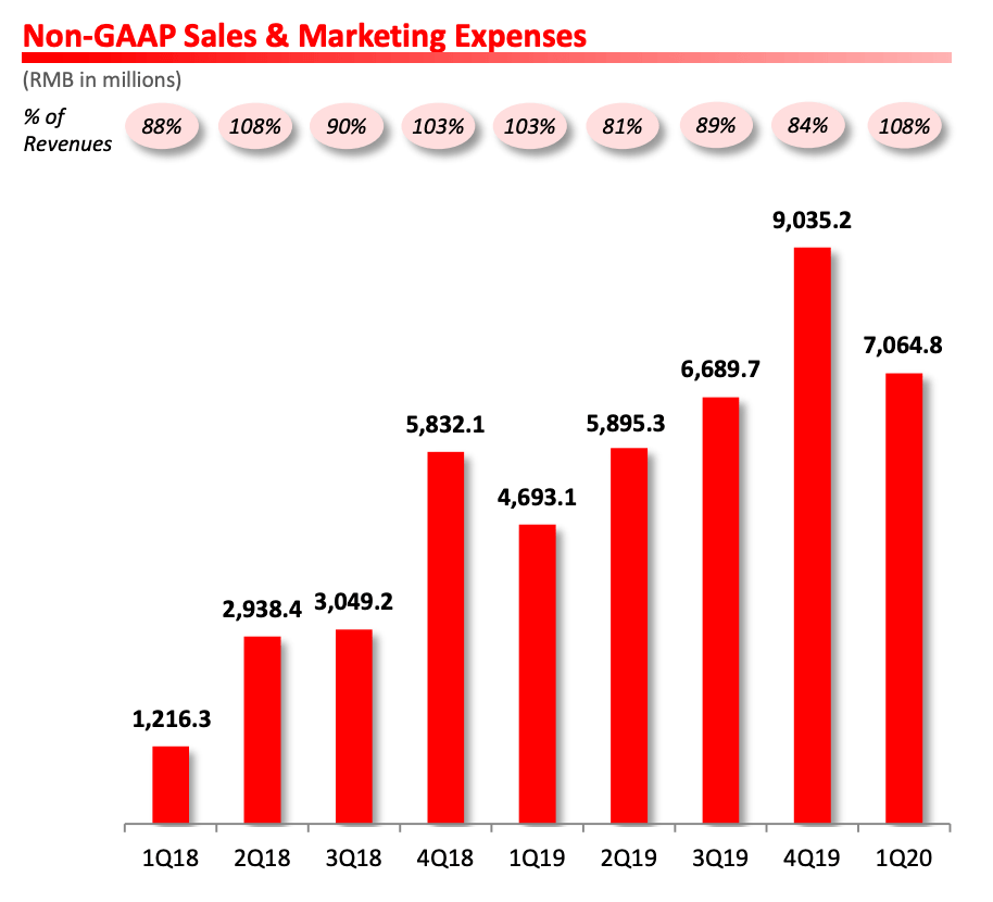 在解释亏损扩大时,拼多多方面称,这主要是因为两个原因。一方面,这是因为疫情期间,为了帮助平台上的商家,拼多多在保持0佣金的基础之上,主动继续降低商家在平台上的营销成本,并将大量的免费流量资源优先给到了用户最需要的医疗用品,因此在交易额翻倍增长的情况下,营收只实现44%的增长。这也造成了这个季度变现率为近一年多的最低点。