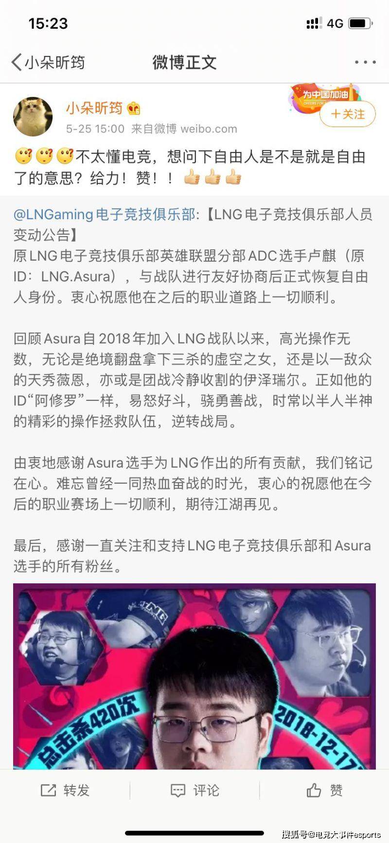 就在刚刚,LNG官宣了下路选手Asura(阿修罗)离队成为自由人的消息,按照一般的情况来说,选手离队、转会都是转会期比较正常的操作,这也没什么好奇怪的,但这条离队信息却从头到尾透露着一股“诡异”的味道。