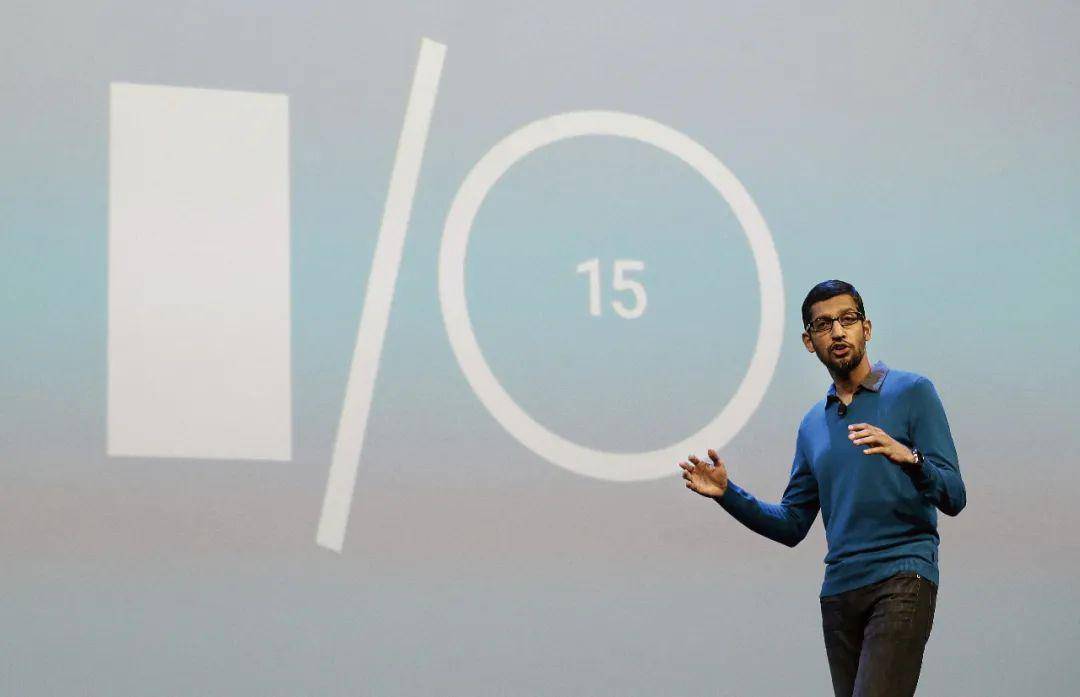 皮查伊在谷歌大会上演讲。