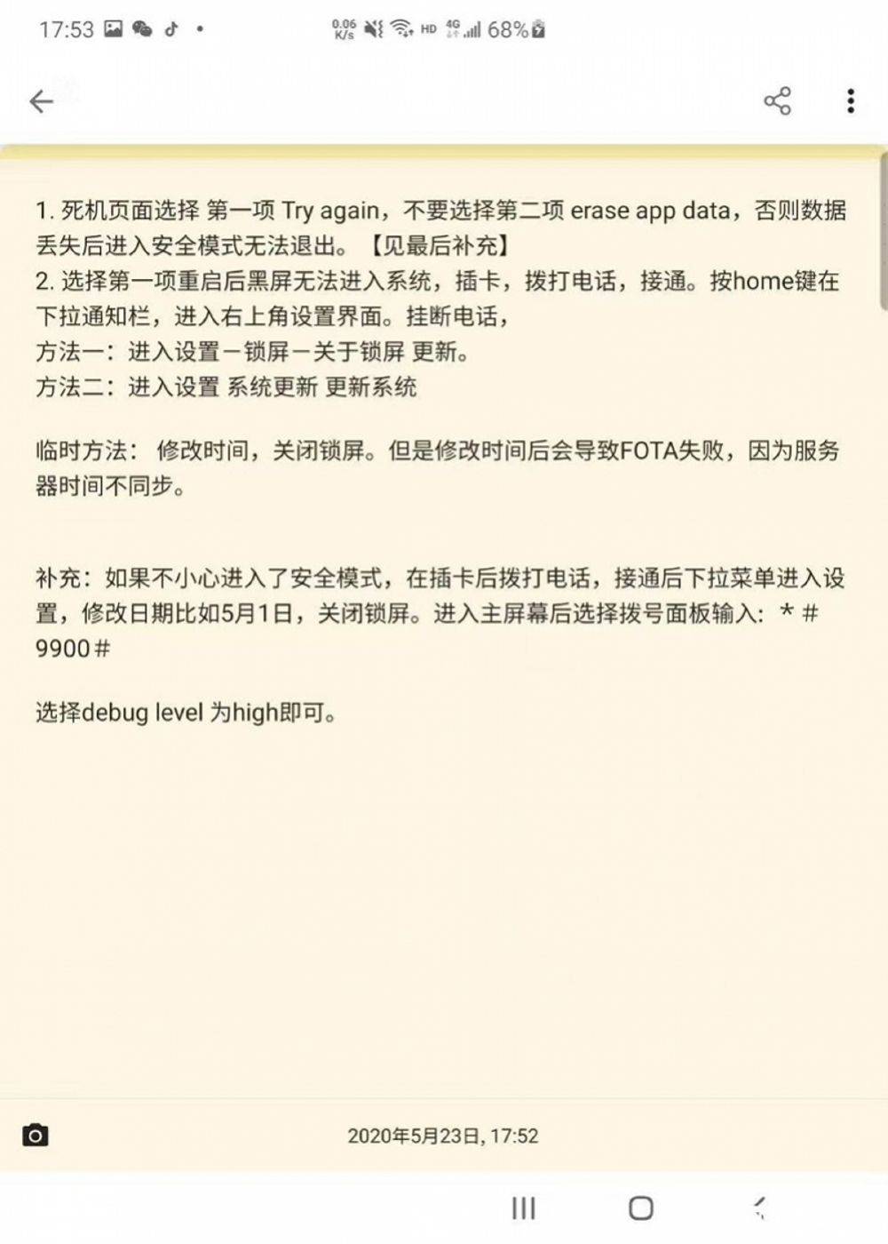 在用惯了公历之后,可能很少人会知道,今年的5月23日,是农历的闰四月初一。不过,不少三星手机的用户,却记住了这一天,因为在5月23日凌晨,国内不少三星手机用户发现手机突然出现死机乱码,无限重启等问题,并且数据丢失。一时间微博,贴吧出现大量投诉求助帖,甚至在三星门店,不少在售卖中的新机同样出现崩溃死机问题。