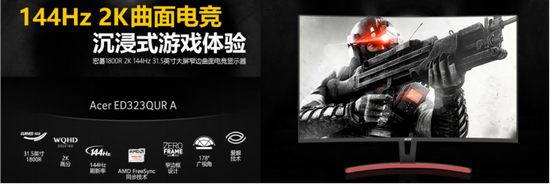 促销期间,Acer ED3系列的曲面屏ED273UR P及ED323QUR A也推出了优惠价,开启电竞爱好者狂欢盛典。据悉,ED3系列均为16:9的2K曲面VA屏,具有1800R曲率,并搭载144Hz刷新率、4ms响应速度以及Free-sync技术 ,助力玩家畅享疾速游戏。不同的是,ED273UR P使用了27英寸的屏幕,ED323QUR A 则搭载了31.5英寸的屏幕。