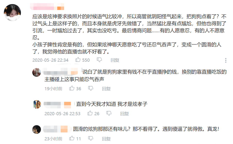 值得一提的是,大家都以为这件事过后炫神会停播一段时间等到消气了再复播,或是虎牙官方会禁播炫神,然而这两种情况都没有发生,反倒是炫神事后第二天按时直播,让网友大感意外的同时又一次调侃炫神。