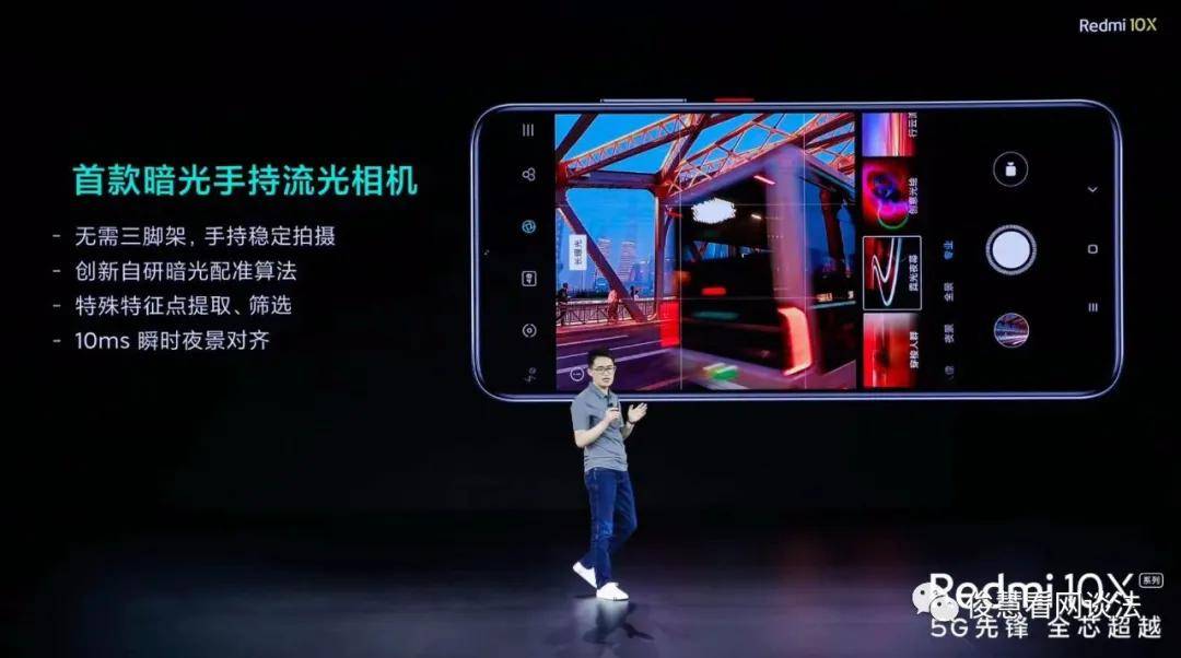 2020年5月26日,红米采用“线上”形式对外发布了红米10X系列新品,并对自封为“5G先锋,全芯超越”称号,同期发布的还有红米电视等新品。