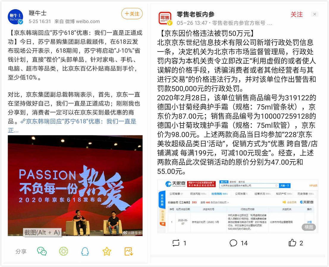不说标榜“正道成功”的京东CEO刘强东如何因为“明州性侵事件”人设崩塌,京东本身在其所谓的“正道”上走得也并不是那么光明磊落。前几天,京东平台就因篡改产品原价再促销一事被北京市市场监督管理局作出警告和罚款50万元的处罚。现在再提什么 “正道成功”,难怪引起大批网友的嘲讽和不屑。