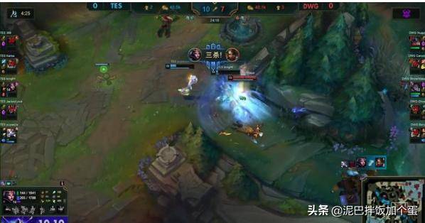 前期有来有回,TES一度陷入小劣势。阿水被拿一血。