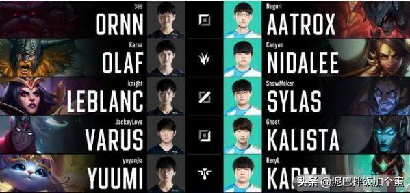 双方阵容选择:TES(奥恩、奥拉夫、妖姬、维鲁斯、猫咪) DWG(剑魔、豹女、塞拉斯、卡莉斯塔、卡尔玛)