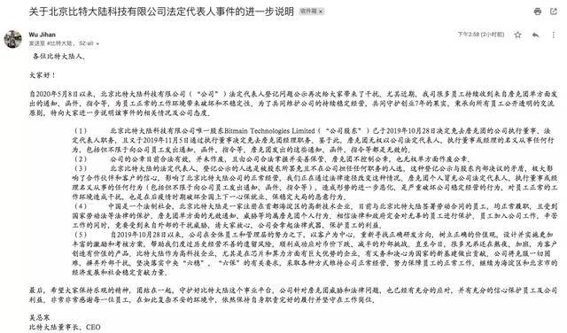 原标题:比特大陆吴忌寒发内部信:保护公司及员工利益 守卫创业7年果实